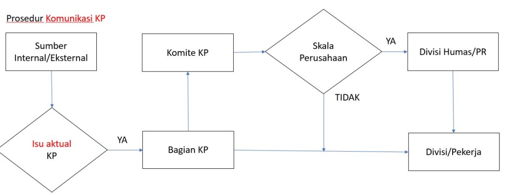 | Interoffice Memo | memo terkait isu aktual KP | jika ada informasi baru | pekerja | e-mail, whatsapp | Bagian KP, bagian Humas/PR |
