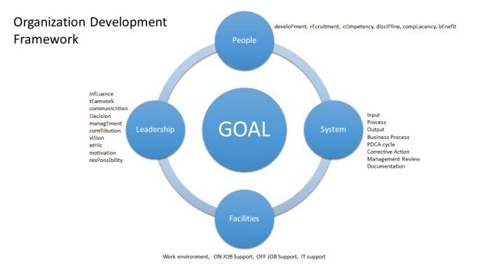 Beberapa Teori mengenai Organization Development dari sederhana hingga kompleks dapat kita temui di dunia maya, dari pemahaman sederhana sampai dengan kompleks turut berpartisipasi dalam dunia ini bahkan mungkin mengambil 1 Semester sendiri dalam Kuliah Manajemen. Dengan pemahaman dan pengalaman penulis, kita akan mencoba memahami teori ini secara sederhana dengan 4 komponen sebagai berikut: